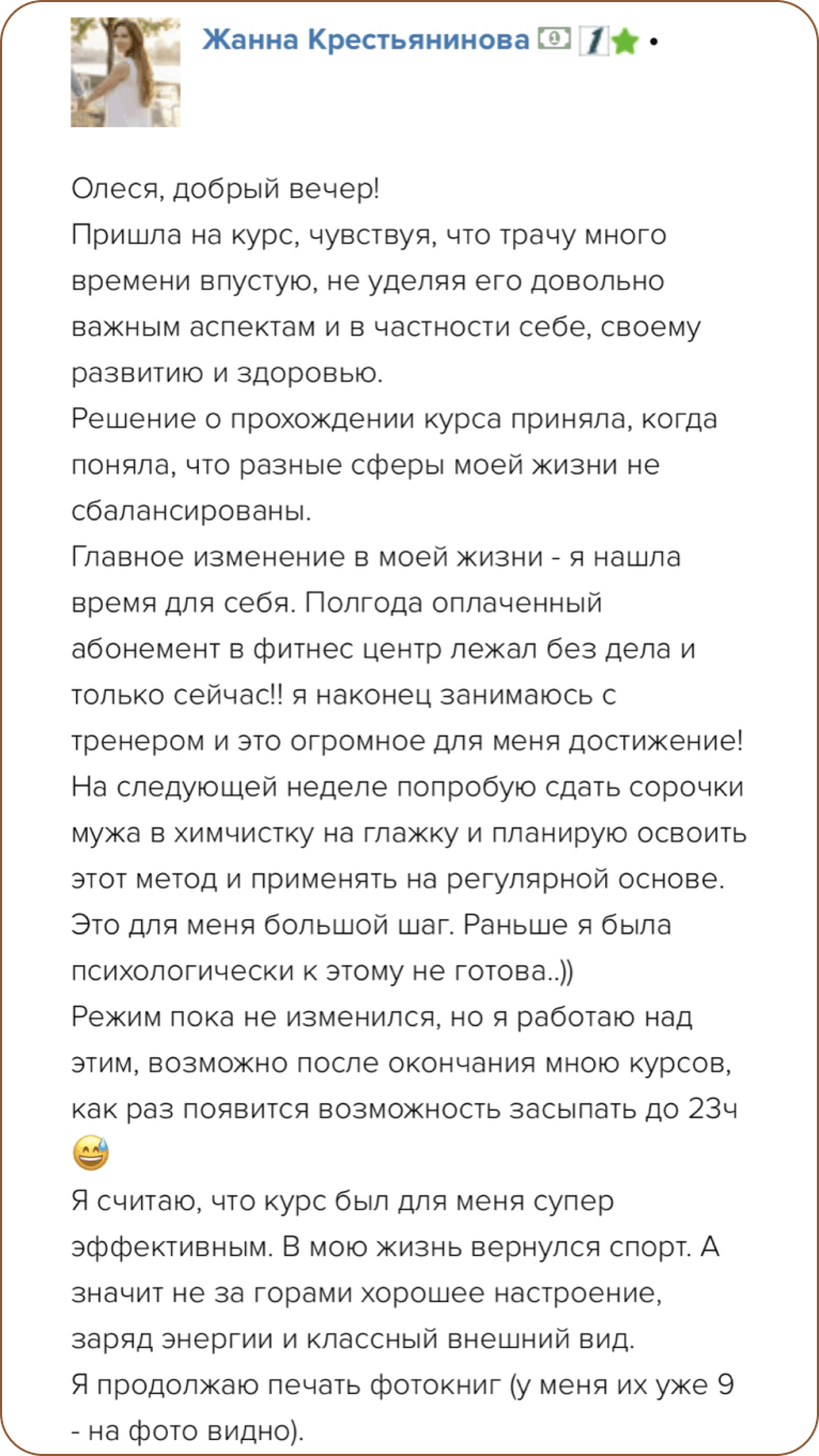 Однозначно да! Вы будете двигаться пошагово. А все задания курса направлены исключительно на то, чтобы сделать вашу жизнь комфортной, чтобы вы управляли ей во всех сферах. Вся система Лайф-менеджмента основывается на индивидуальном подходе, с учетом всех жизненных обстоятельств, желаний и целей конкретного человека.
